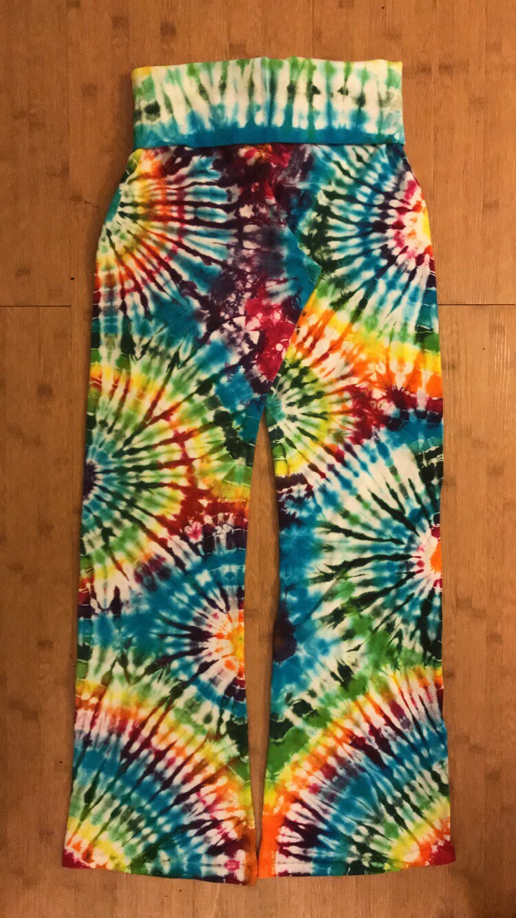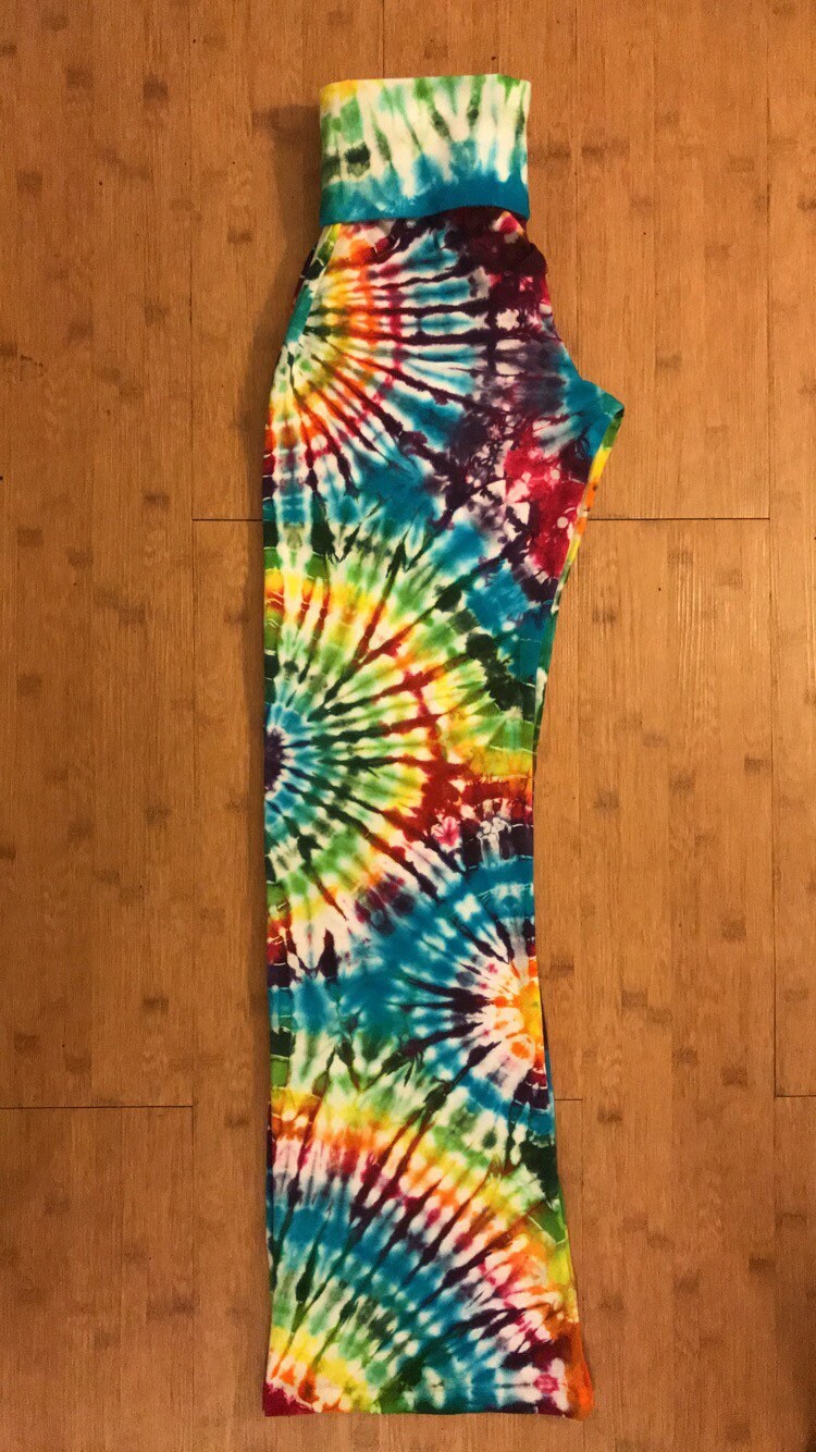 Full length yoga pants with slight flare. Fold over waist band.