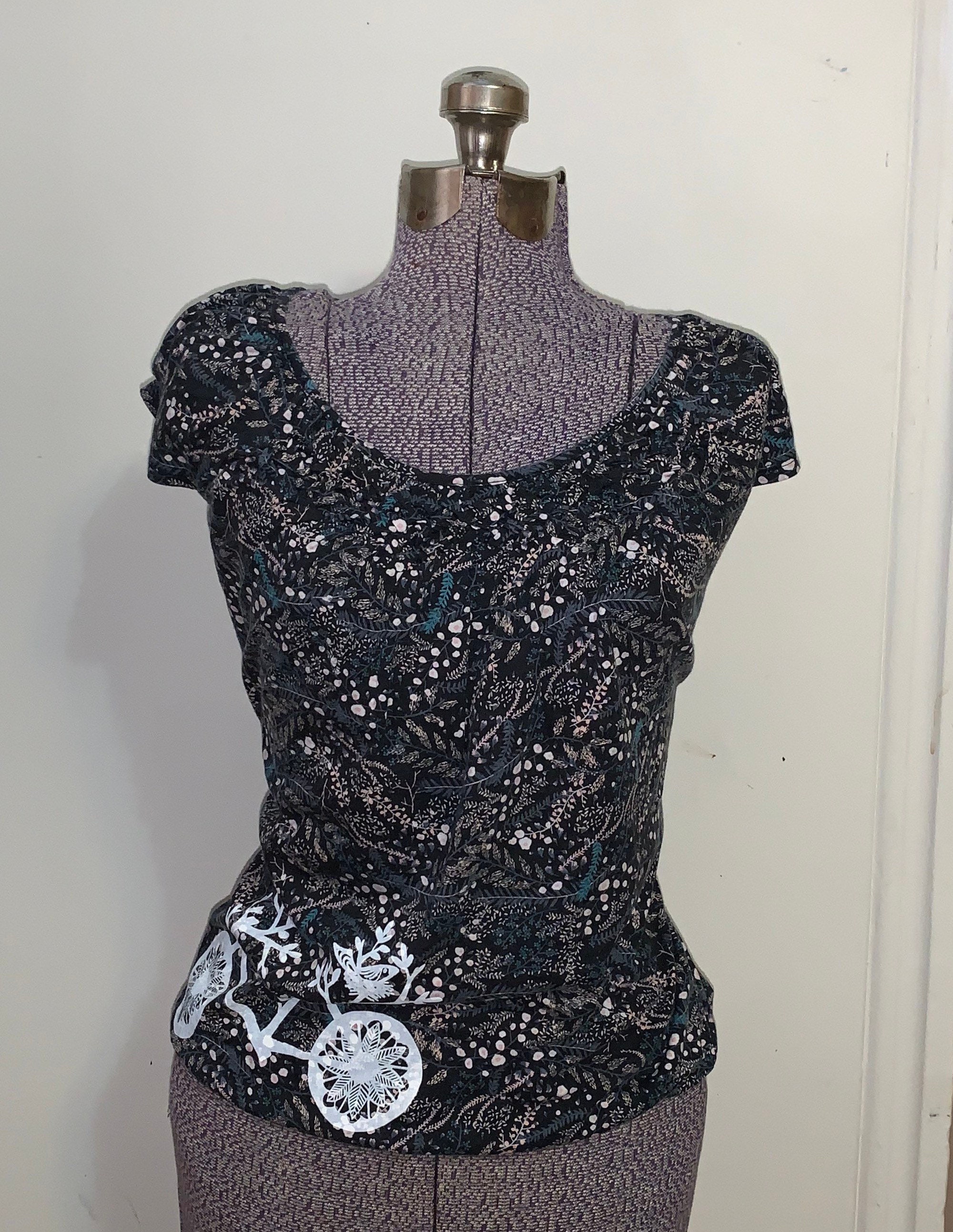 Floral and leaf patterned jersey top from from LOFT - size XS (Also could likely fit Small and Medium)
